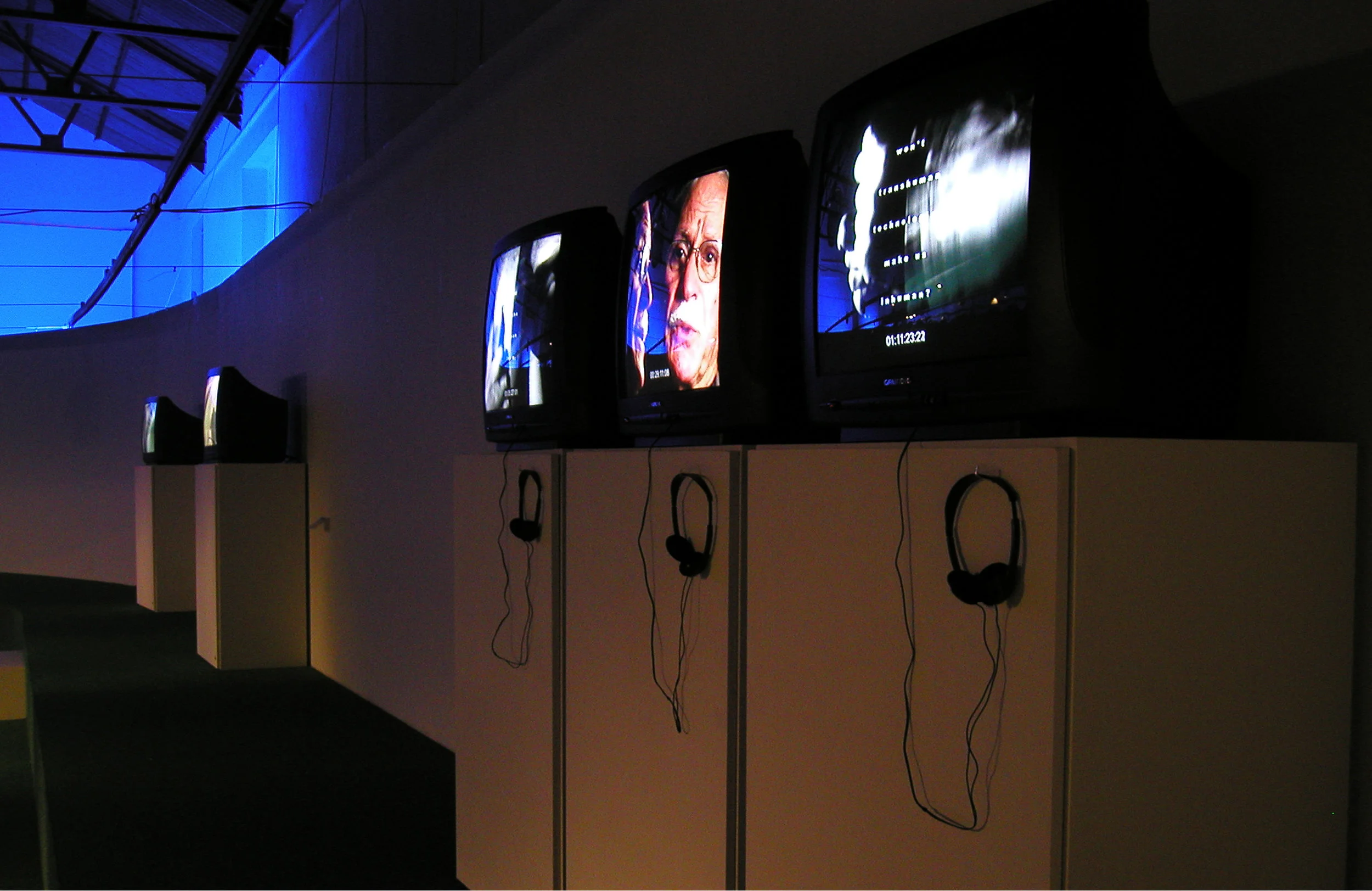 PHOTO FINISH, (Reconfigured version for BODYWORKS exhibition entitled SPIRAL) PAL, three single channel videos, stereo audio, The Powerhouse, Nicosia Municipal Arts Centre, Cyprus, 2004